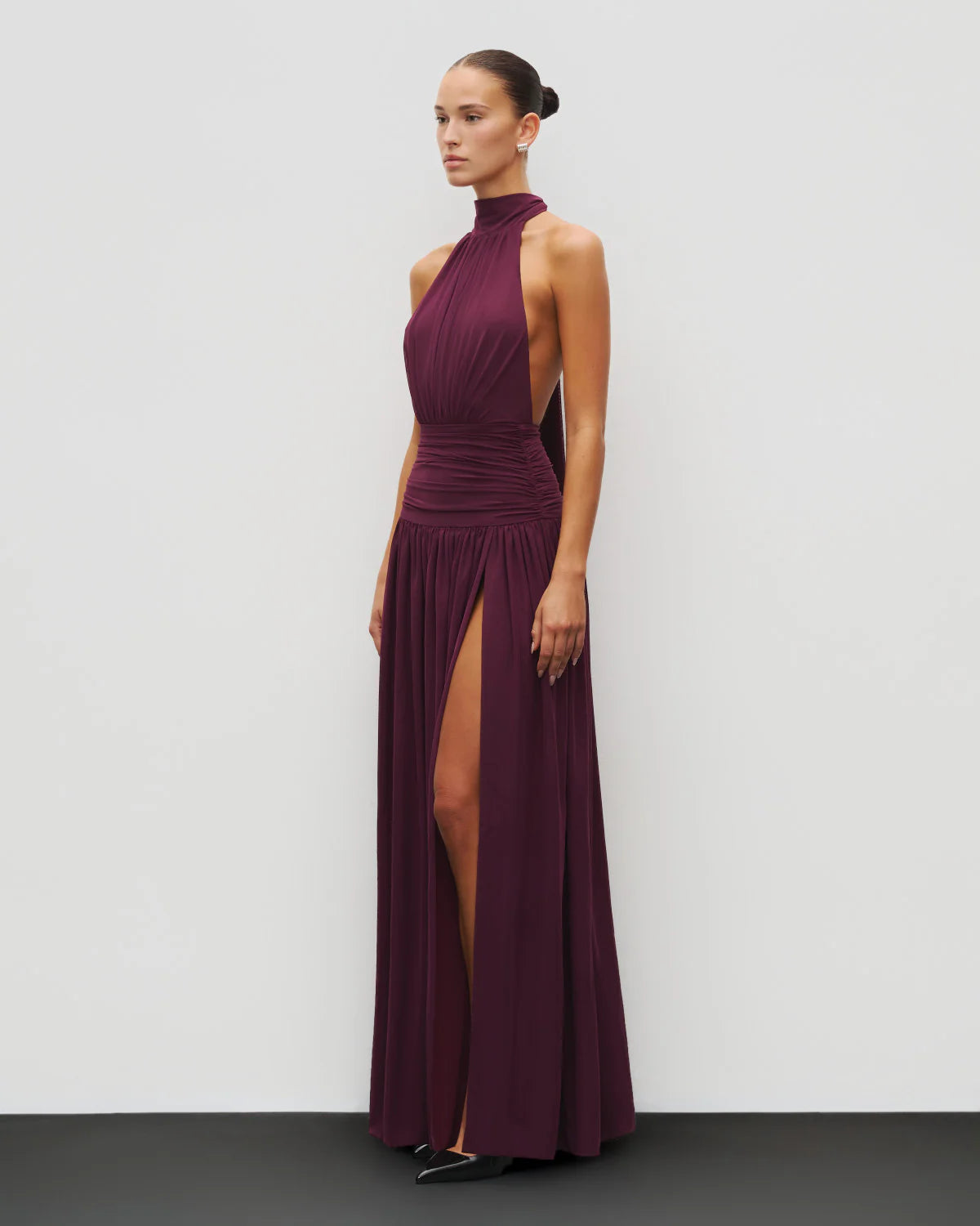 The Halter Gown, crafted from Heiress’ signature double-layered power mesh, showcases a sleek halter neckline, open back, and a refined leg slit. Fully lined for support and shape, this gown sculpts and elongates with fluid precision.